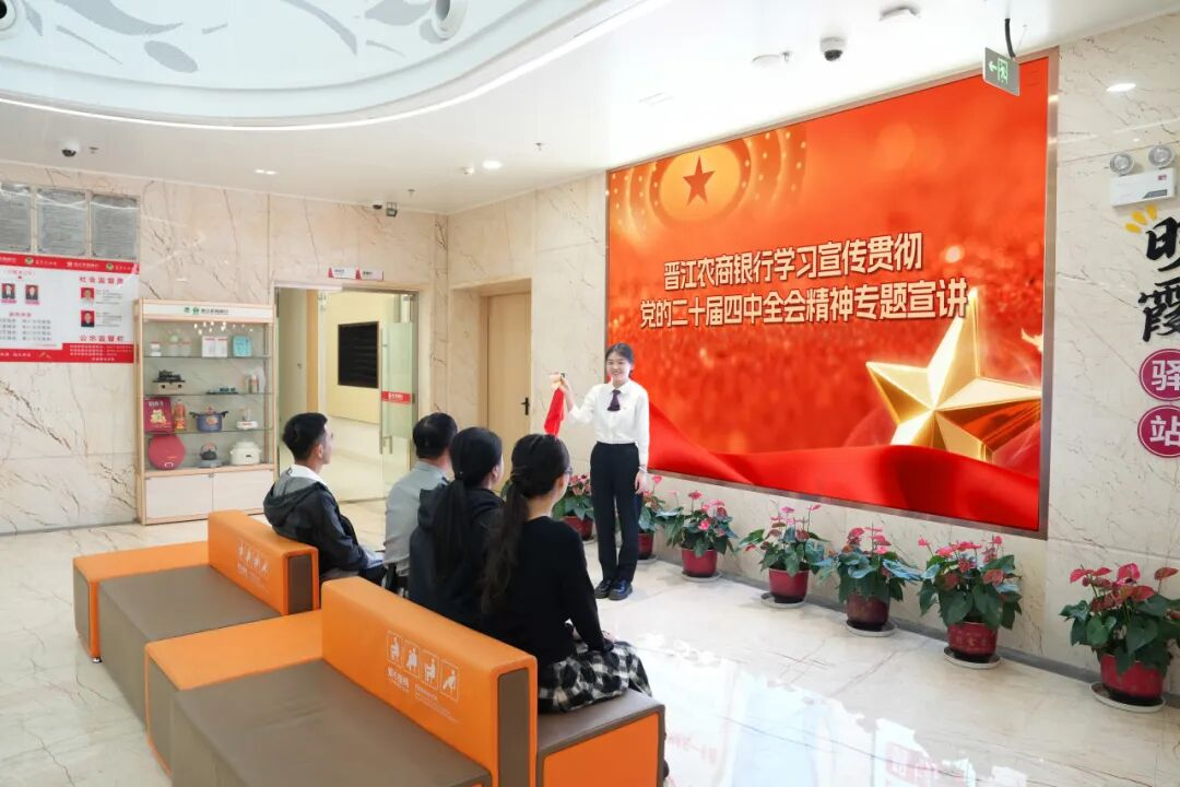 ??晉江農(nóng)商銀行成立“奮晉號(hào)”理論學(xué)習(xí)宣講團(tuán),宣講團(tuán)把全會(huì)關(guān)于金融工作的重點(diǎn)內(nèi)容提煉為簡(jiǎn)潔、易記的短句,融入廳堂宣講、田間走訪(fǎng)、客戶(hù)座談等場(chǎng)景,用通俗的語(yǔ)言讓群眾“聽(tīng)得懂”,明快的節(jié)奏讓政策“記得住”,在輕松互動(dòng)中幫助大家摸清金融政策、用上便民服務(wù)、守住錢(qián)袋子。