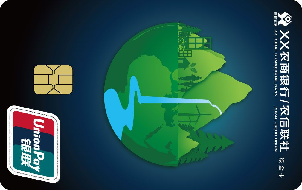 “綠金卡”是福建省農村信用社(農商銀行)為貫徹落實“3060”雙碳目標,樹立“畫綠水青山,鑄綠色農信”核心理念,針對支持倡導綠色生活方式、綠色消費方式的年輕客群、環保人士等,與中國銀聯合作發行聯名貸記卡。