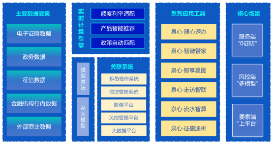 ??創新“泉心·隨心速辦”應用,打通電子證照在柜面、信貸等系統間流轉,打造開戶、授信、政策直享等全場景“0”證明創新應用,已累計為各類經營主體授信超70億元。